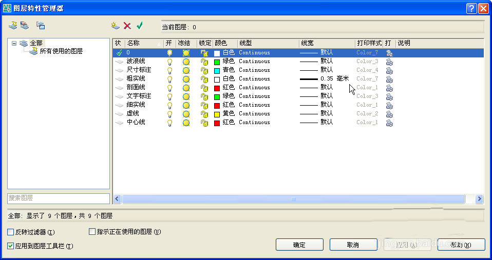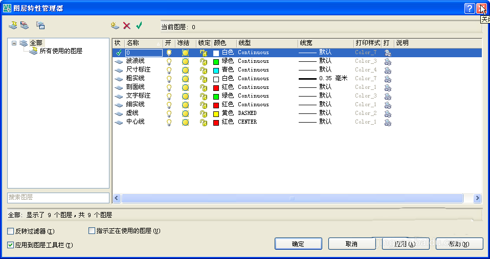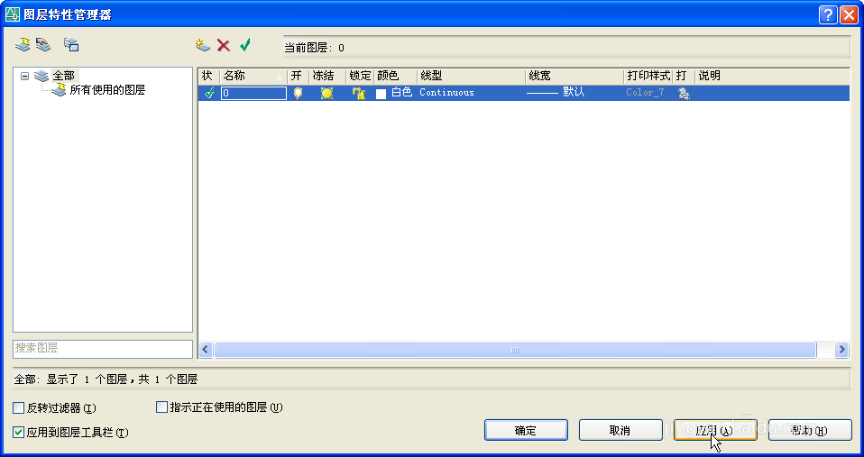 14、點擊圖層狀態(tài)管理器對話框中的應(yīng)用。