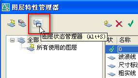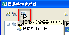 2、如圖,點擊左上角的圖層狀態(tài)管理器圖標(biāo)。