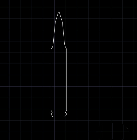 10、選擇否按下回車鍵,就得到了子彈頭的另一側,將中間的鏡像線刪除,最后的圖形如圖所示: