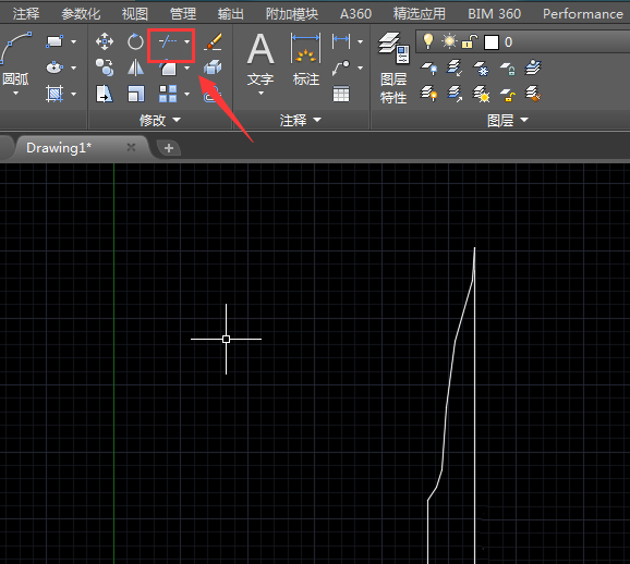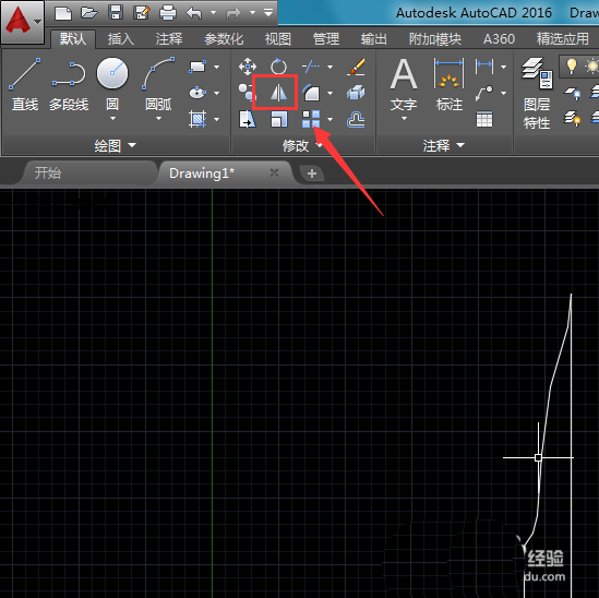 5、使用修剪命令將多余的線剪掉,再在菜單區里找到鏡像選項,如圖所示: