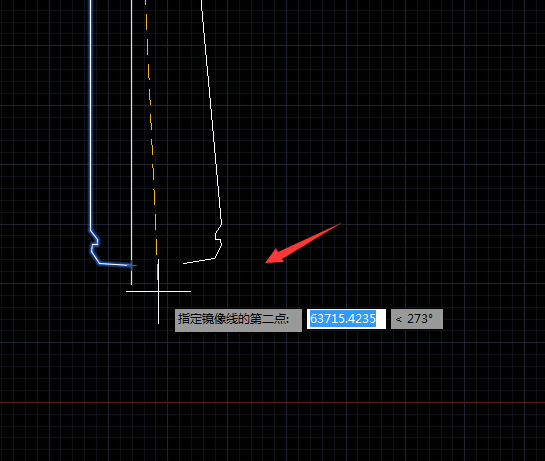 8、指定鏡像的第一點后,提示我們指定鏡像的第二點,如圖所示: