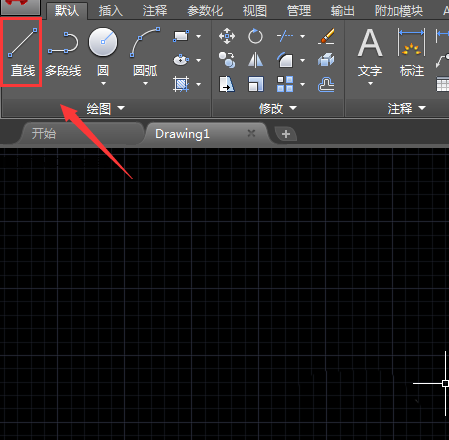 2、在該界面內找到菜單區里的直線命令,如圖所示: