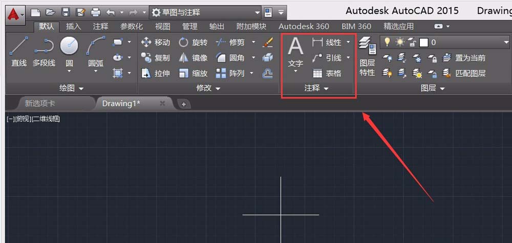 2、在上面的工具欄里找到注釋選項區,如圖所示: