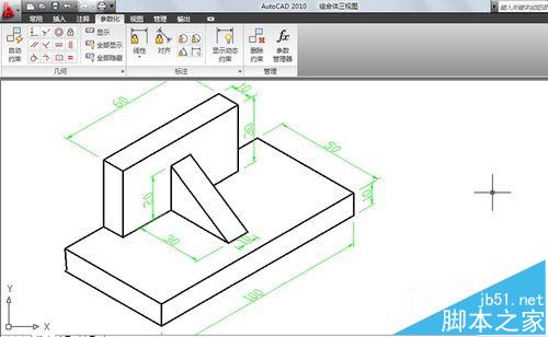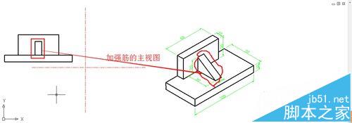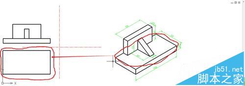 4、接下來我們畫一個組合體的三視圖