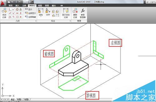 三視圖是觀測者從三個不同位置觀察同一個空間幾何體而畫出的圖形。用AutoCAD畫三視圖有兩種方法:一種是用二維的方法來繪制;或者先創(chuàng)建三維模型,然后將模型投射成三視圖。今天,小編為大家介紹第一種方法用二維的方法來繪制。
