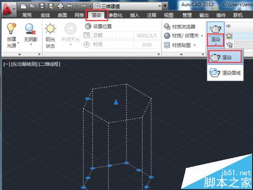 8、渲染立體圖形。單擊渲染標簽,單擊面板上的渲染按鈕,選擇渲染,系統自動把圖形按照默認方式進行渲染。