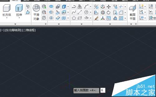 4、先畫平面圖形。單擊多邊形工具后,光標處提示輸入側面數,輸入6,按回車鍵。我們要畫一個正六棱柱。