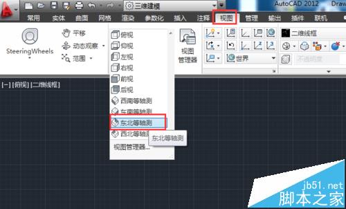 2、選擇坐標系。單擊視圖按鈕,顯示視圖管理面板,單擊視頻管理器左邊的下拉三角,選擇東北等軸測。