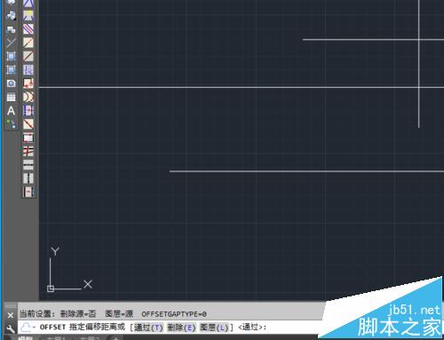 4、“選擇偏移的對(duì)象”,我們選擇繪制好的第一條直線,提示“指定要偏移那一側(cè)上的點(diǎn)”,我們?cè)谥本€的下側(cè)點(diǎn)擊,完成平行線的繪制