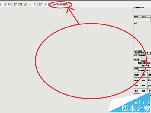 5、彈出塊編輯頁面,在里面可編輯修改圖框內的所有內容,編輯修改完成后在塊編輯頁面的上方有一個“關閉塊編輯(c)”,單擊關閉,如圖所示: