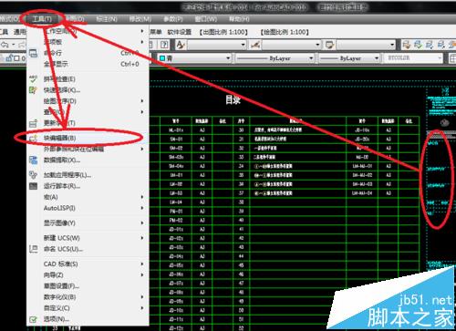 3、先單擊選中圖框,點擊菜單欄中的“工具”,彈出下拉菜單,在下拉找到“塊編輯器”,如下圖所示: