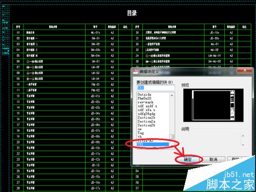 4、點擊“塊編輯器”,彈出“編輯塊定義”對話框,在對話框中的“要創建或編輯的塊”下方有一個藍色已選中的塊名稱“TK1”,“TK1”是選中的圖框的名稱,然后點擊對話框下方的“確定”,如圖所示: