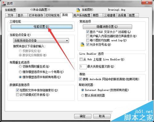 4、頁面跳轉如下??吹缴厦娴哪莻€啟用硬件加速選項框了么?那個選擇或者不選擇就會有極大的差別。電腦軟件默認為選擇,但是有時候軟件自己會突然不選擇,這時候很多人就茫然了因為自己平時根本不知道這個啟用或者不啟用硬件加速差別在哪里,如果你作圖的時候線條一閃一閃的,很卡很停頓,那絕對是這里被篡改了。所以記得到這個設置里面改回來就好啦。