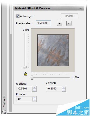 如果一切正確的,偉大的。如果沒有,你可能需要調整自己的喜好映射工具。得到的材料規模的對象設置另一種選擇是使用“縮放到對象”中的材料調色板設置。這是發現你已經創建旁邊選擇一種新的材料后...按鈕,將打開調整位圖對話框(在SETUV命令正式找到)。
