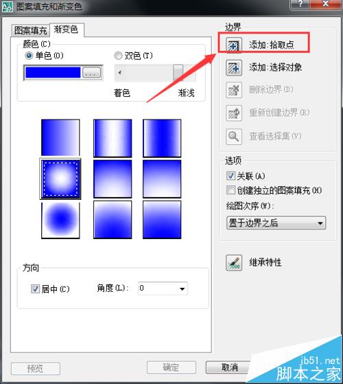 8、點(diǎn)擊添加拾取點(diǎn)選項(xiàng),拾取我們繪制的圓形,如圖所示: