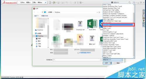 7、然后在SolidWorks中,“打開”,選擇文件類型為“ACIS(*.sat)”。選擇剛才保存的文件即可。