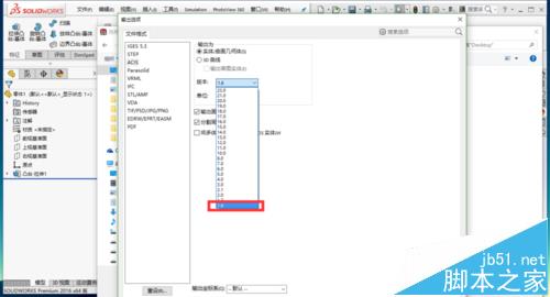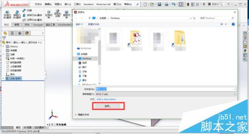2、選擇“文件”-“另存為”,在“保存類型”下拉列表中選擇“ACIS(*.sat)”。這時,再選擇“選項”,設置輸出的版本為“1.6”。版本越低越好。