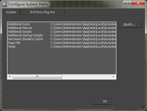 6、可以順便看一下configure system paths。我的這個也是在C盤,只不過和我選的路徑不一樣啦。然后就可以再次打開3dmax,這時就發(fā)現(xiàn)不會再報錯啦!