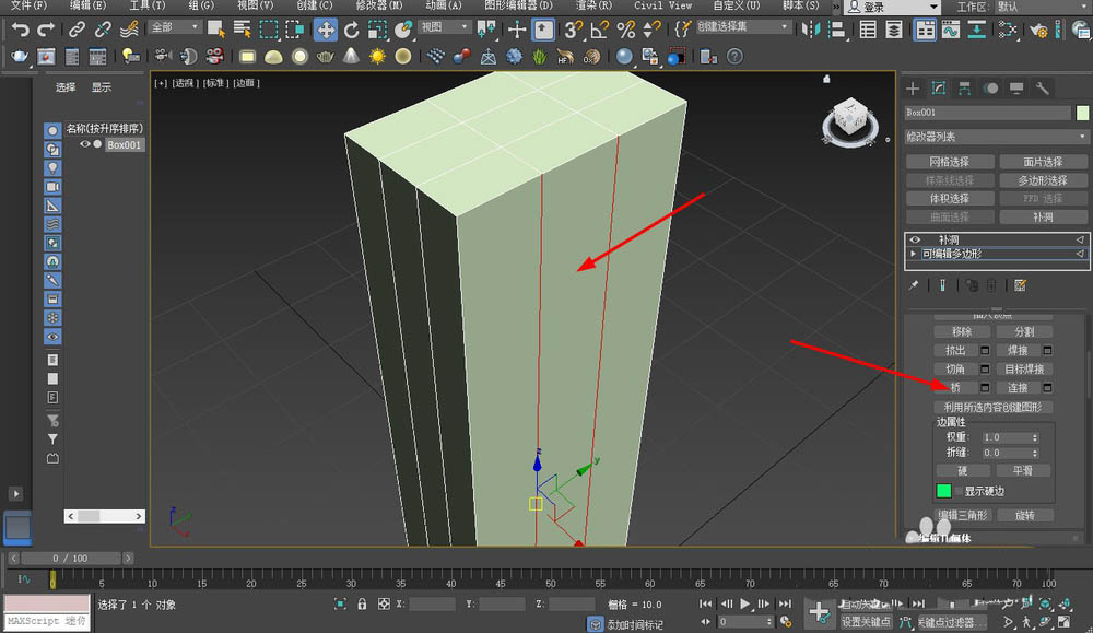 3、【橋】命令會在兩個邊中間,生成一個面。