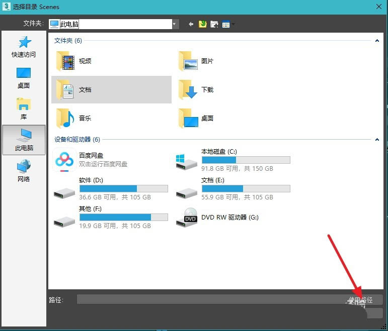 8、選擇你想要的默認路徑文件,點擊使用路徑。