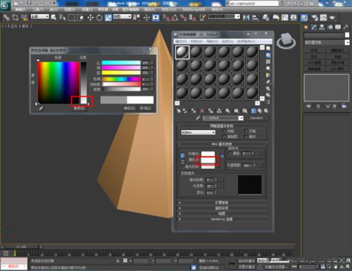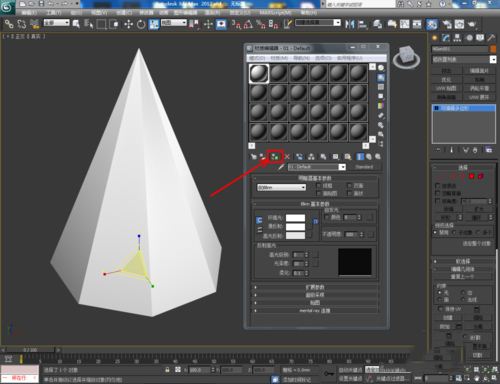 4.點擊【材質編輯器】,按圖示設置一個白色材質球并附加給模型即可。這樣我們的七棱錐就制作完成了,趕緊試試吧!