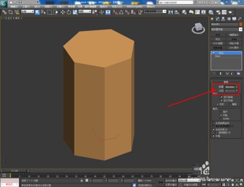 2.選中七邊形,點擊【修改】-【擠出】,按圖示設置好擠出的各個參數,繪制出一個七棱柱模型并將其轉換為可編輯多邊形;