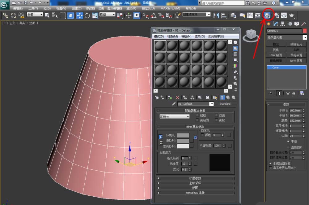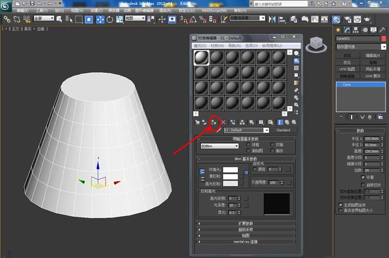 4、選中圓臺模型,點擊【將材質指定給選定對象】將材質附加上去,這樣我們圓臺模型就制作完成了。