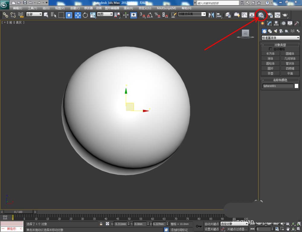 1、打開3Dmax2012軟件,點擊【創建】-【幾何體】-【標準基本體】-【球體】,在作圖區域繪制一個球體模型并根據需要設置好模型的各個參數;