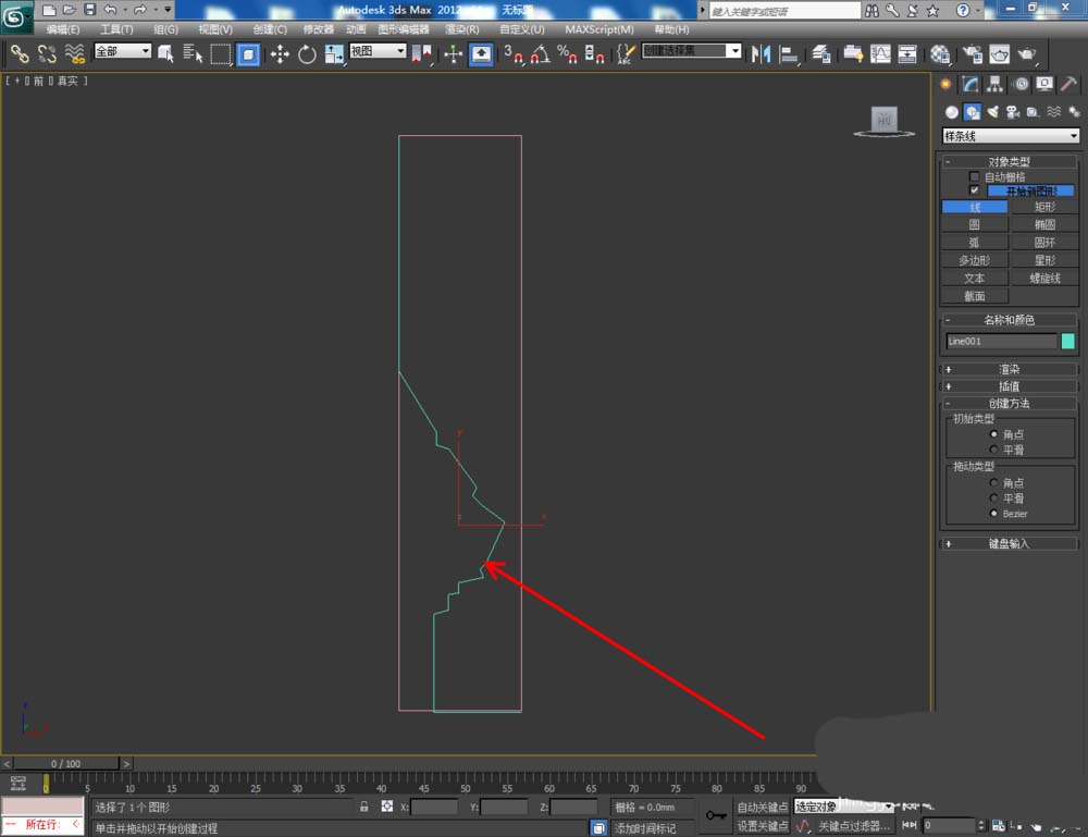 2、點擊【創建】-【圖形】-【線】,以矩形圖案為參數按圖示繪制一個線段圖案。選中線段圖案,點擊右邊工作區中的【頂點】,將圖示圖案上的選點進行圓化平滑處理(如圖所示);