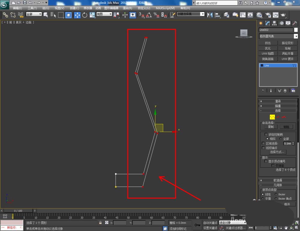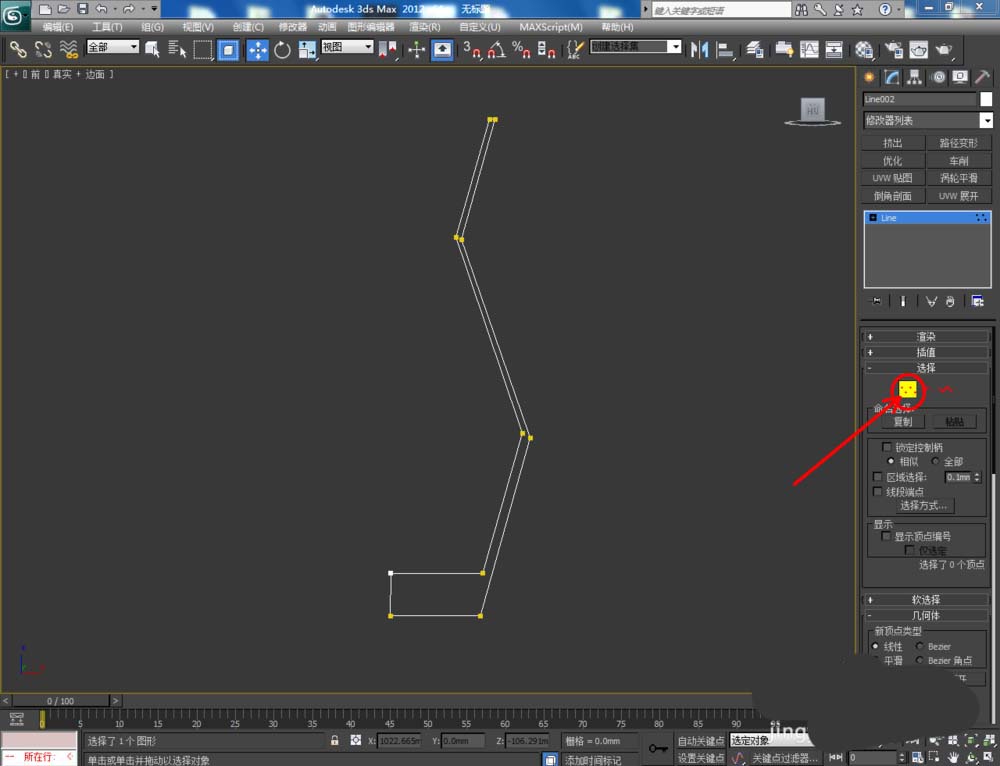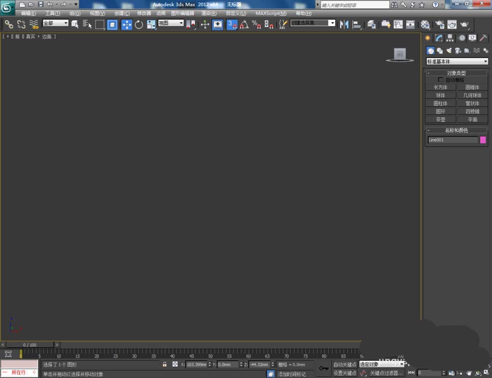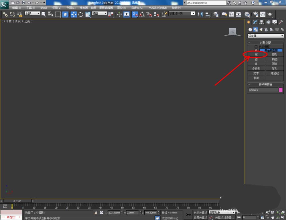 1、打開3Dmax2012軟件,點擊【創建】-【圖形】-【線】,在作圖區域繪制一個多邊圖案。選中圖案,點擊【對象顏色】將圖案的對象顏色設置為:白色(如圖所示);