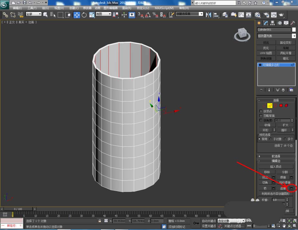 3、點擊【邊】圖標,選中圖示模型上的一條邊后,點擊【環形】將整圈邊線選中,點擊【連接】右邊的小方框并按圖示設置好連接的各個參數。點擊【頂點】圖標,選中圖示模型上的點后,將選點對齊到模型的分段線處。按圖示依次完成幾組頂點的對齊操作(如圖所示);