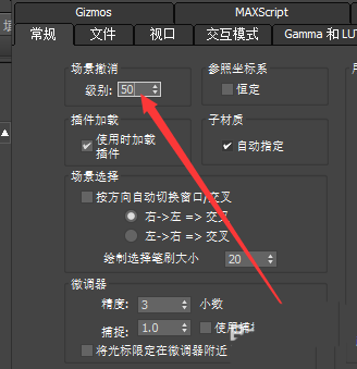 3、然后打開首選項設置對話框中在單擊“常用”選項卡。如果在軟件在突然發生錯誤的故障時而未響應的情況下在”場景撤消“欄參數中更改級別,級別越大越好,但是占用的內存也大。