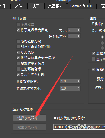 5、如果打開軟件后在使用中發生了屏幕閃屏可以在選擇單擊”視口“選項卡參數設置國在顯示驅動程序欄中單擊”選擇驅動程序“按鈕。