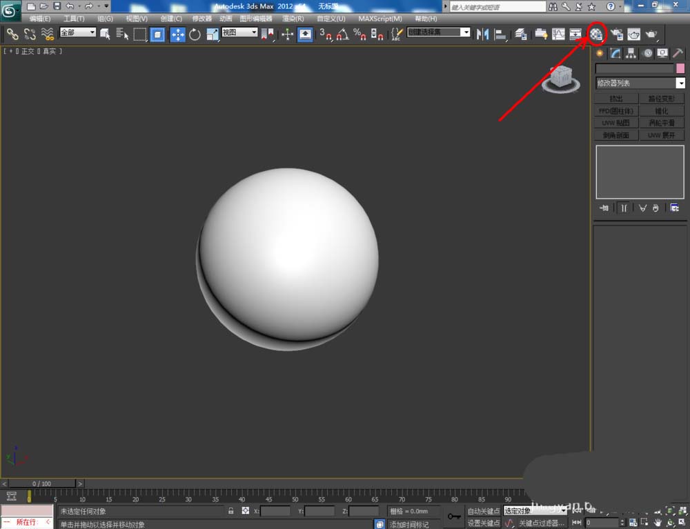 1、打開3Dmax2012軟件,點擊【創建】-【幾何體】-【球體】,在作圖區域繪制一個球體模型,并按圖示設置好球體的各個參數。選中球體,點擊【對象顏色】將模型的對象顏色設置為白色(如圖所示);