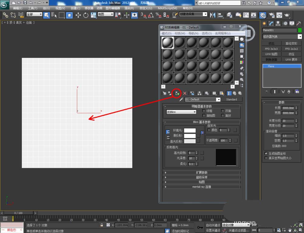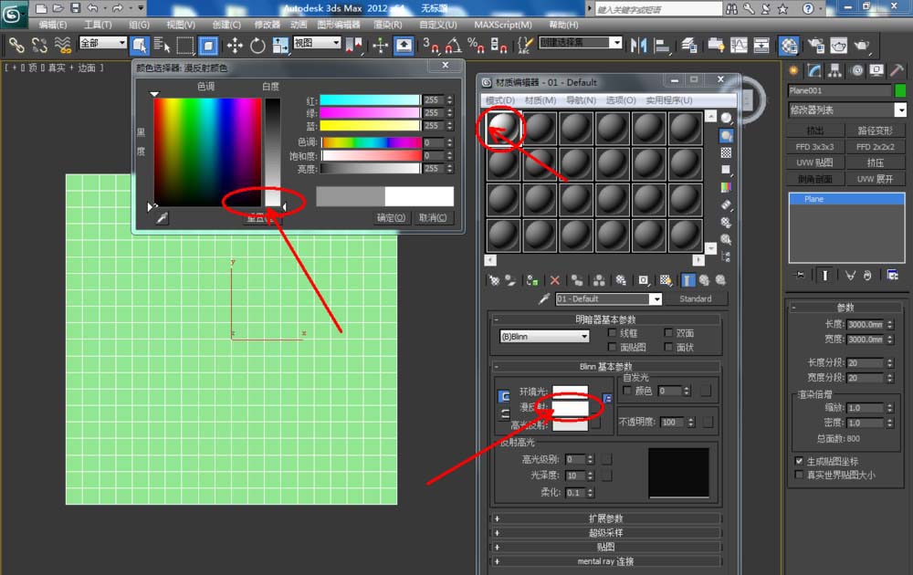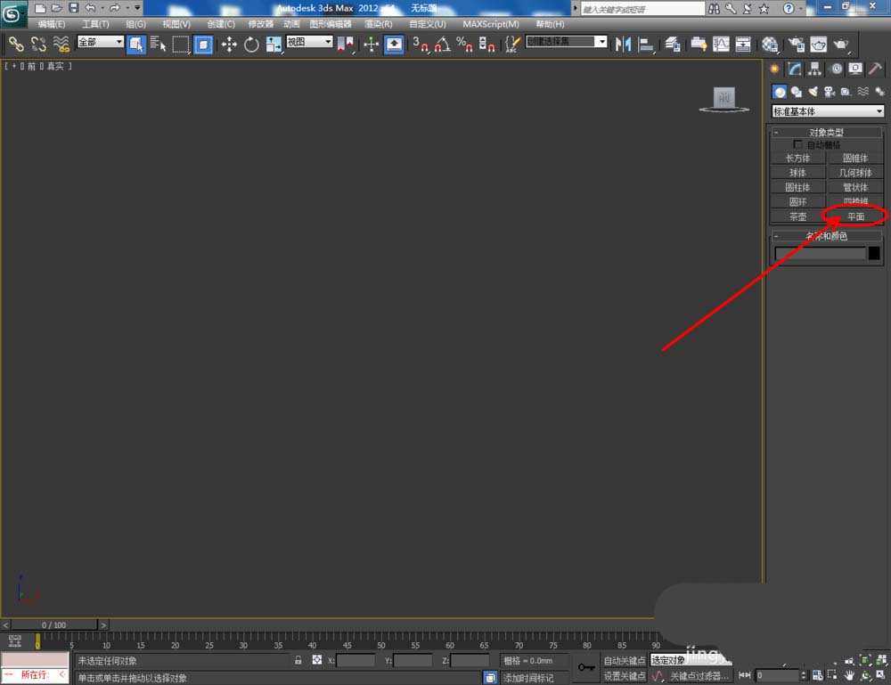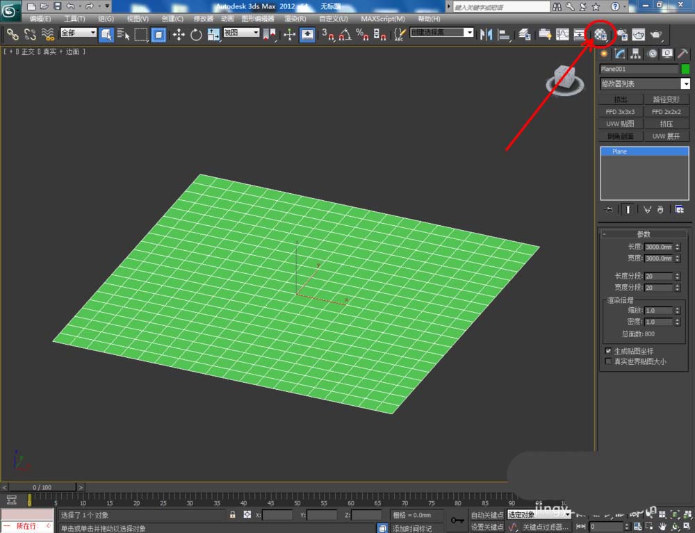1、打開3Dmax2012軟件,點擊【創(chuàng)建】-【幾何體】-【標(biāo)準(zhǔn)基本體】-【平面】,在作圖區(qū)域繪制一個平面模型,并按圖示設(shè)置好平面模型的各個參數(shù);