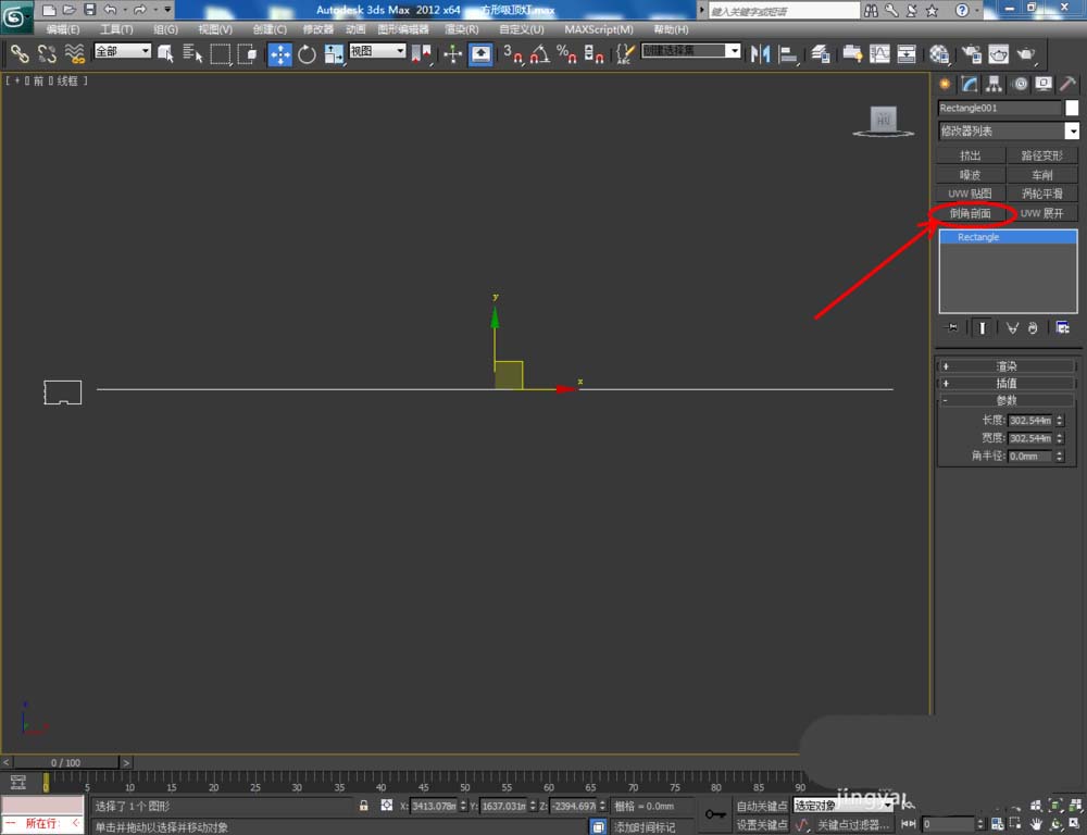 1、打開3Dmax2012軟件,點(diǎn)擊【創(chuàng)建】-【圖形】-【矩形】,在作圖區(qū)域繪制一個(gè)矩形圖案并按圖示設(shè)置好矩形的各個(gè)參數(shù),制作出一個(gè)矩形路徑圖案。選中圖案,點(diǎn)擊【對(duì)象顏色】將圖案的對(duì)象顏色設(shè)置為:白色;