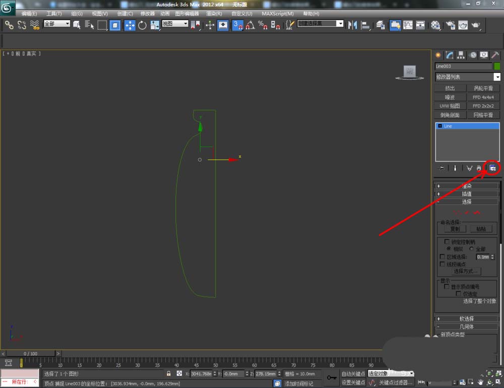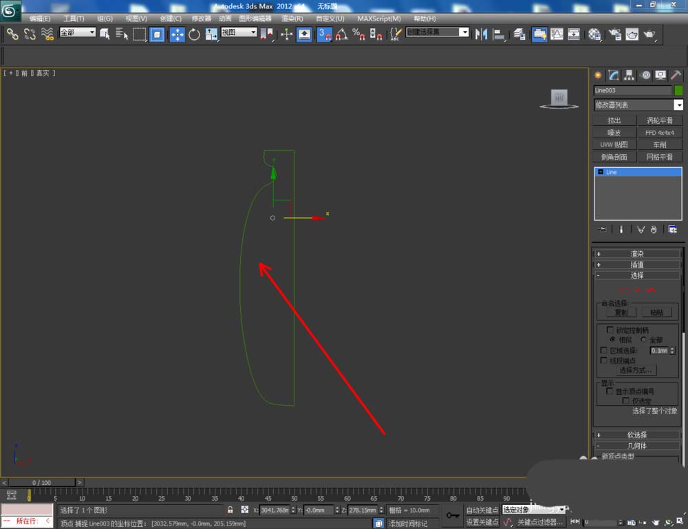 1、打開3Dmax2012軟件,點擊【創建】-【圖形】-【線】,在作圖區域繪制一個多邊圖案。點擊右邊工作區中的【頂點】圖標,選中圖示圖案上的點,對點進行平滑圓化處理,完成螺絲刀把手部分截面的繪制;