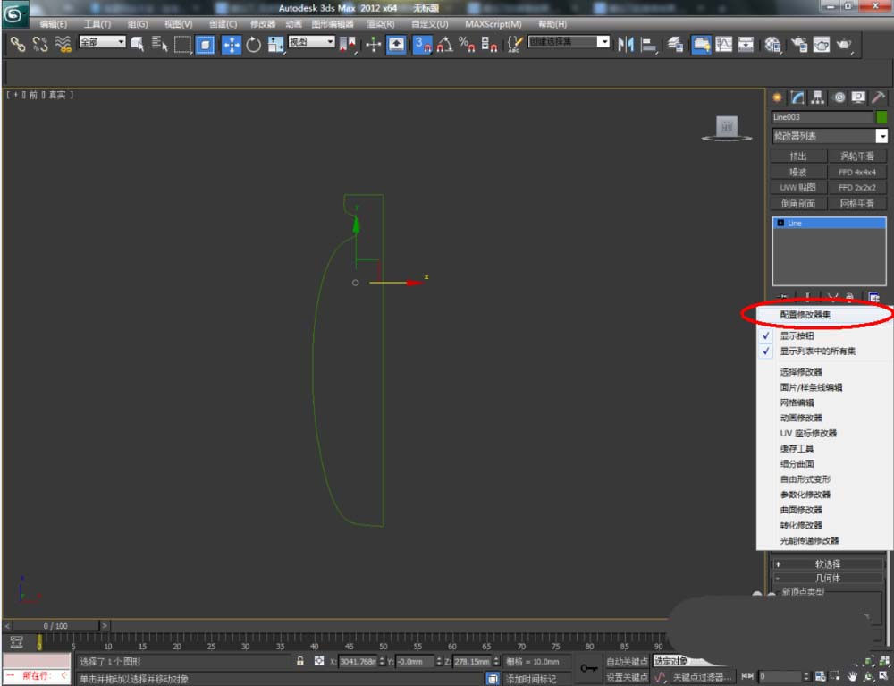2、點擊【修改】-【配置修改器集】,彈出配置修改器集選項框,找到【車削】并將其拉動到右邊的選項欄中,點擊【確定】將車削調出;
