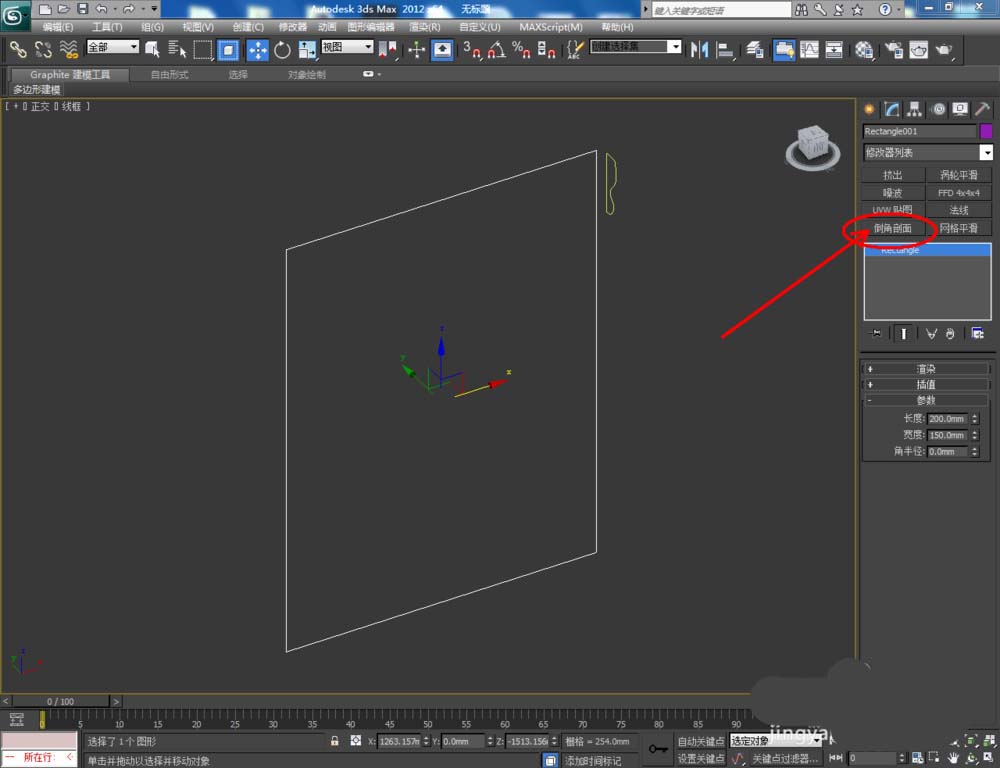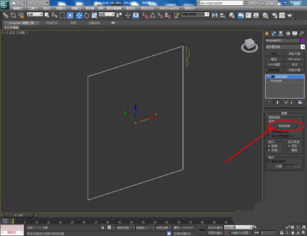 3、選中矩形圖案,點(diǎn)擊【修改】-【倒角剖面】-【拾取剖面】,鼠標(biāo)點(diǎn)擊拾取相框截面圖案。完成后,點(diǎn)擊【剖面Gizmo】對剖面進(jìn)行旋轉(zhuǎn),制作出相框基本體(如圖所示);