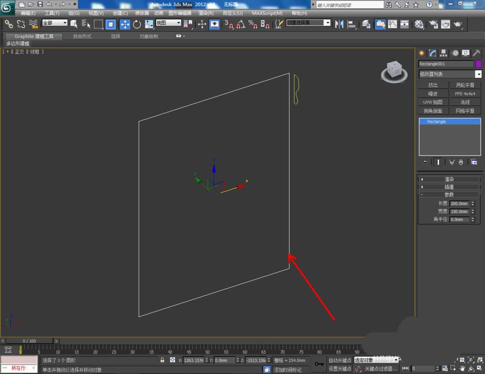 1、打開3Dmax2012軟件,點(diǎn)擊【創(chuàng)建】-【圖形】-【矩形】,在作圖區(qū)域繪制一個150*200mm的矩形圖案;