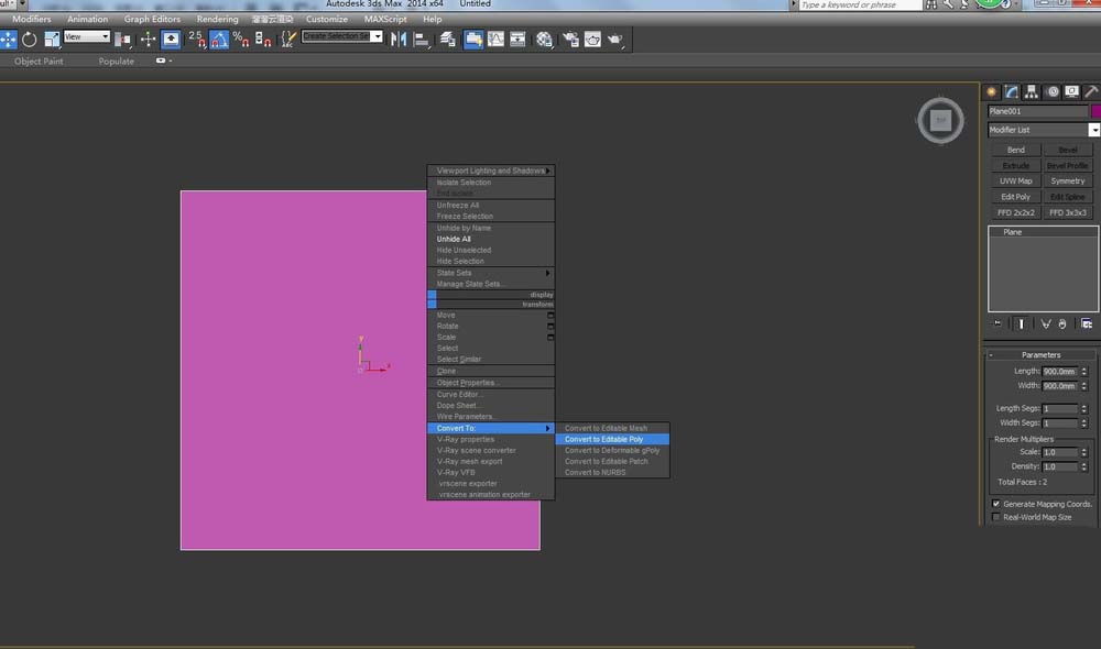 1、首先打開3dmax 軟件,進入界面選擇創(chuàng)建面板上的plane按鈕并輸入數(shù)值,并將其右單擊轉成可編輯多邊形。如下: