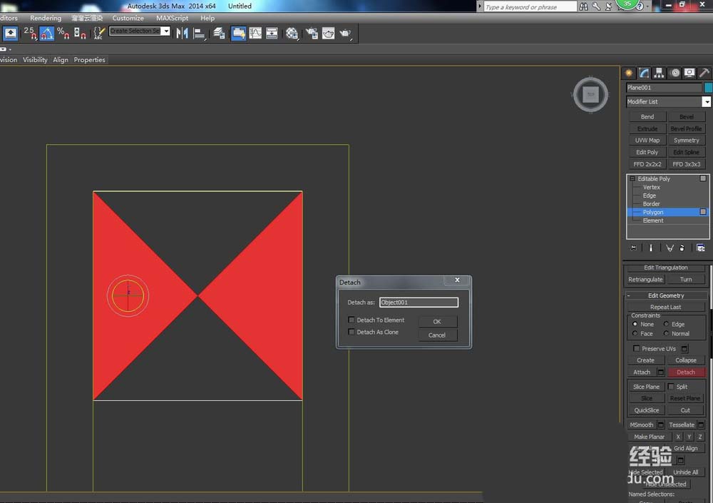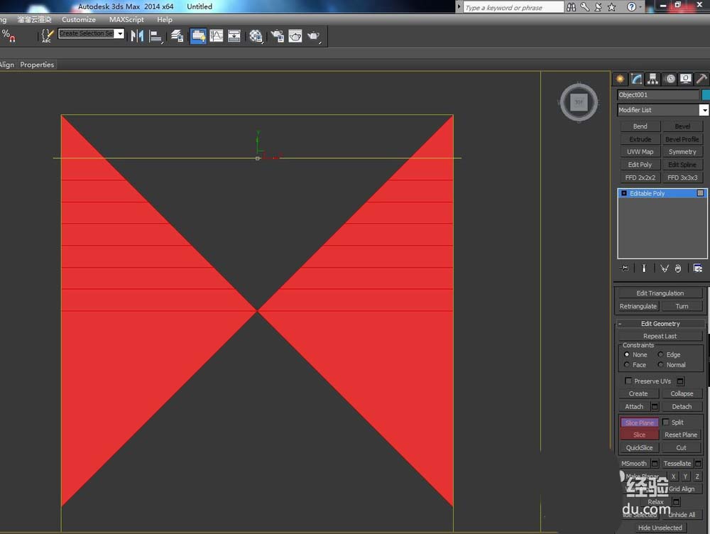 2、進入修改面板,選擇面,用切片平面與快速切片按鈕配合操作,進行45度切割。如下: