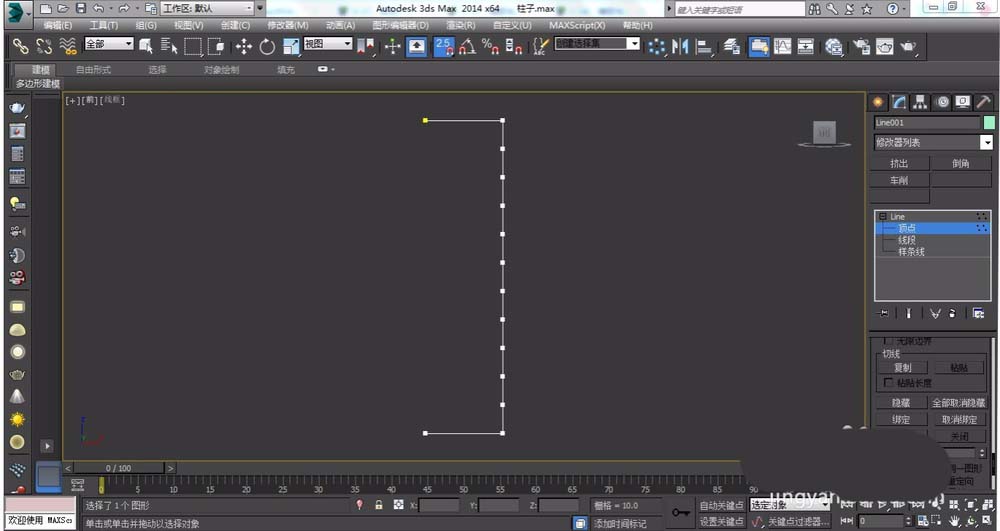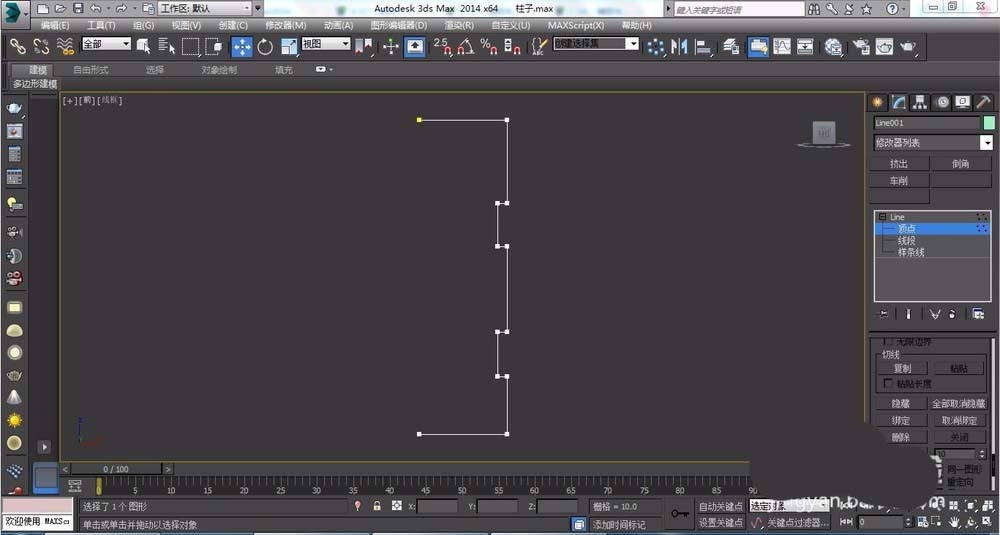 1、下面我們先在前視圖繪制出造型柱子的簡單的截面造型,點擊線命令,先來繪制下面樣子的形狀。