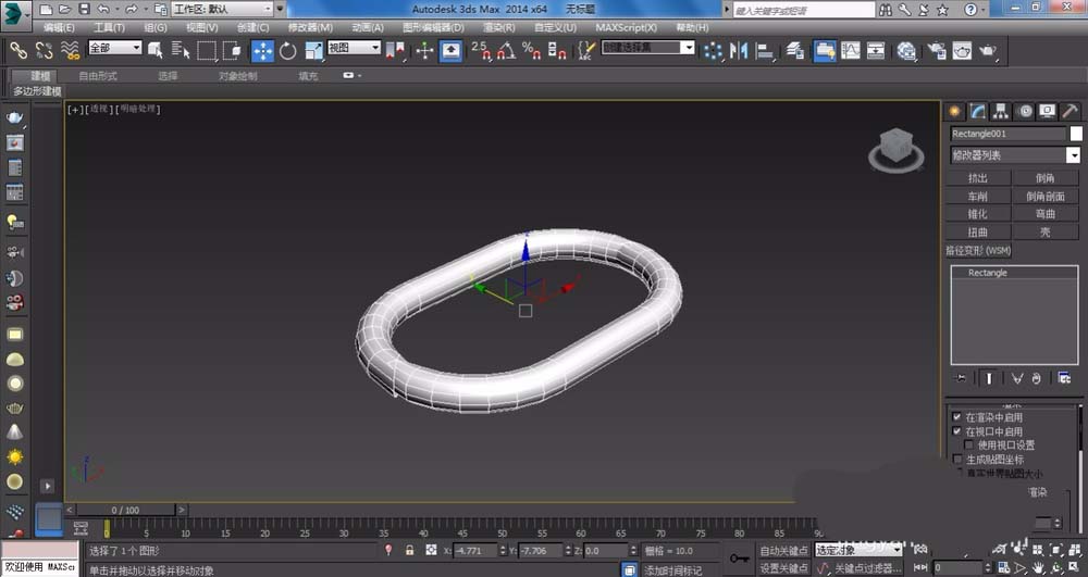 2、選擇透視圖并最大化視口,接著點擊渲染按鈕,把在渲染中啟用和在視口中啟用勾選,并給它合適的厚度。