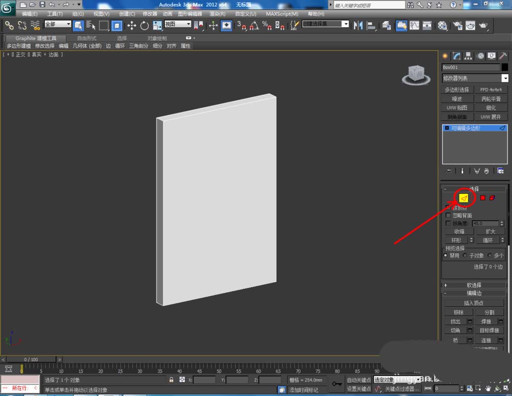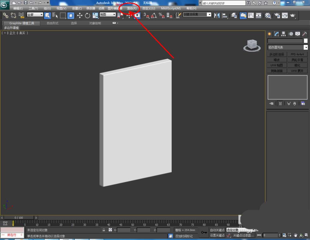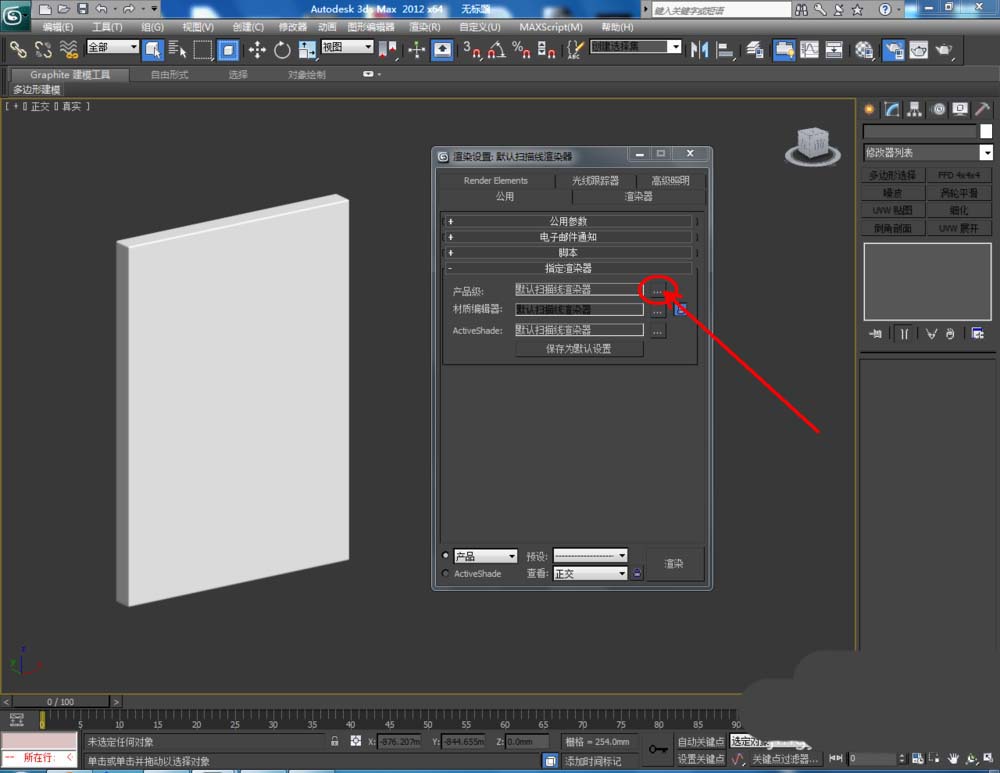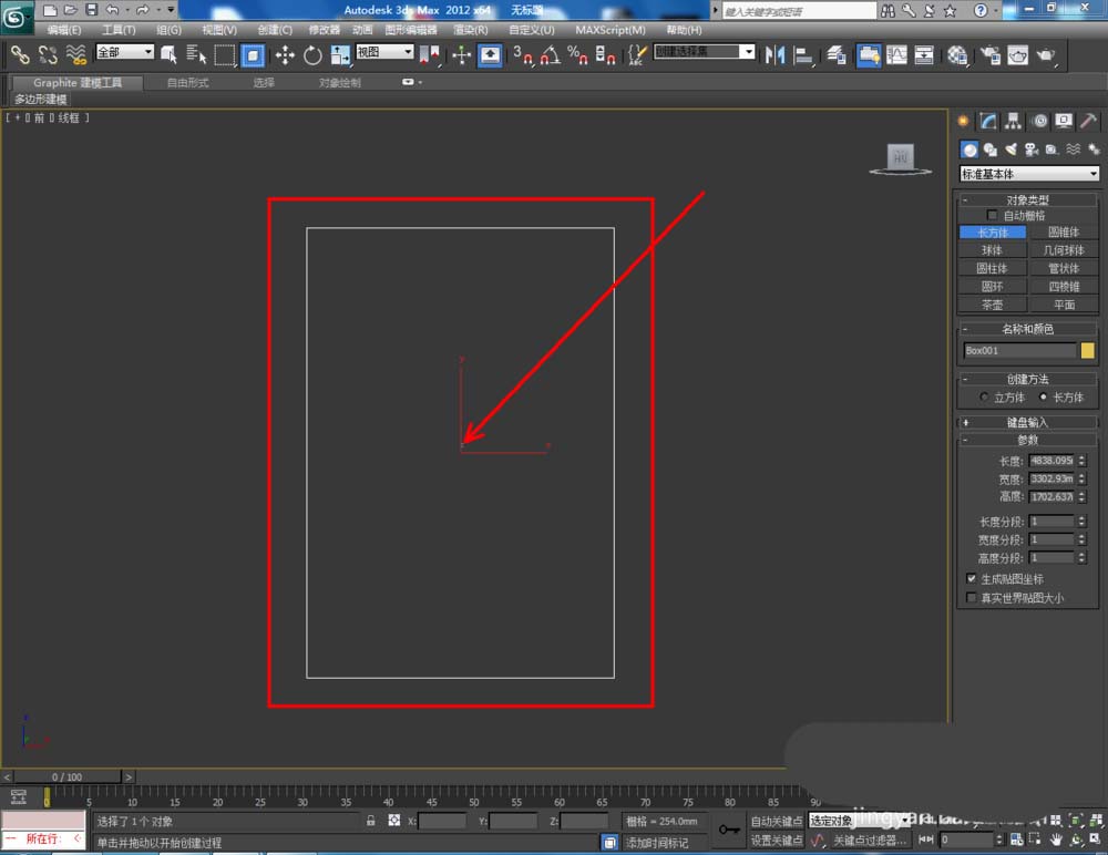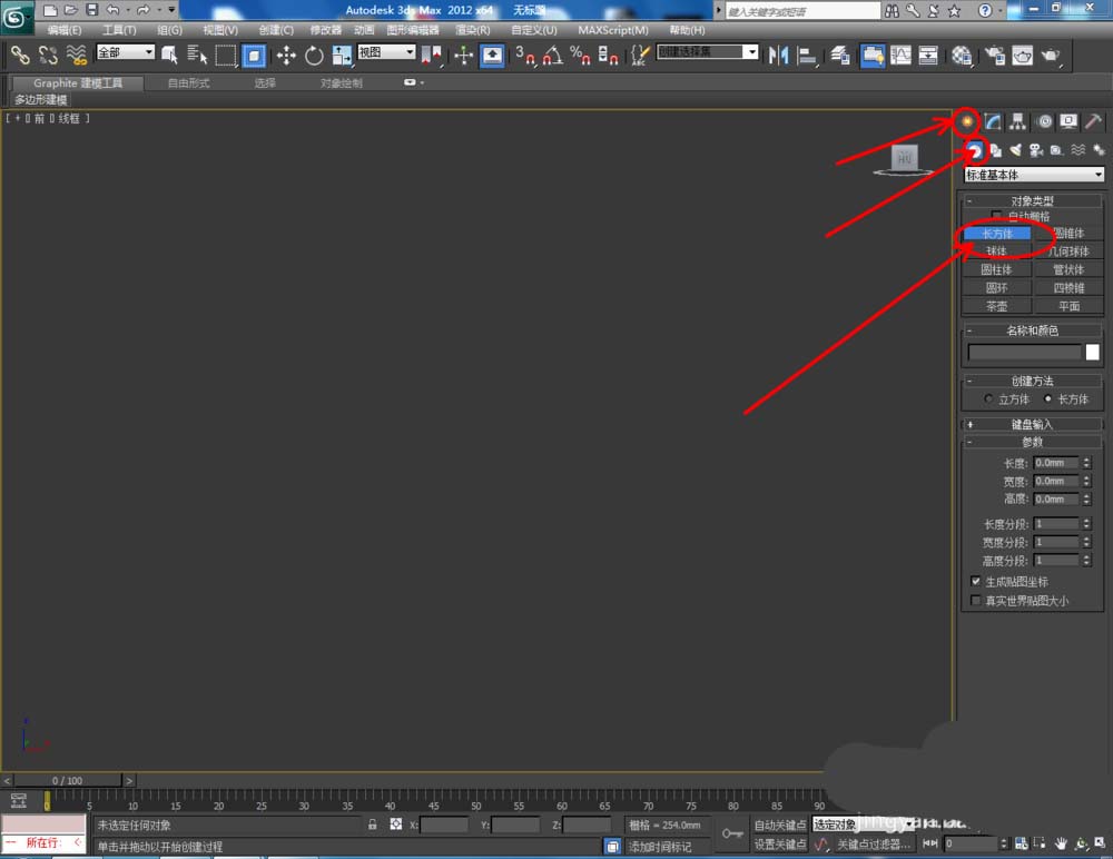 1、打開3Dmax2012軟件,點擊【創建】-【幾何體】-【長方體】,在作圖區域繪制一個長方體模型,并按圖示設置好模型的大小參數。點擊【材質編輯器】,設置一個白色材質球并附加給模型(如圖所示);