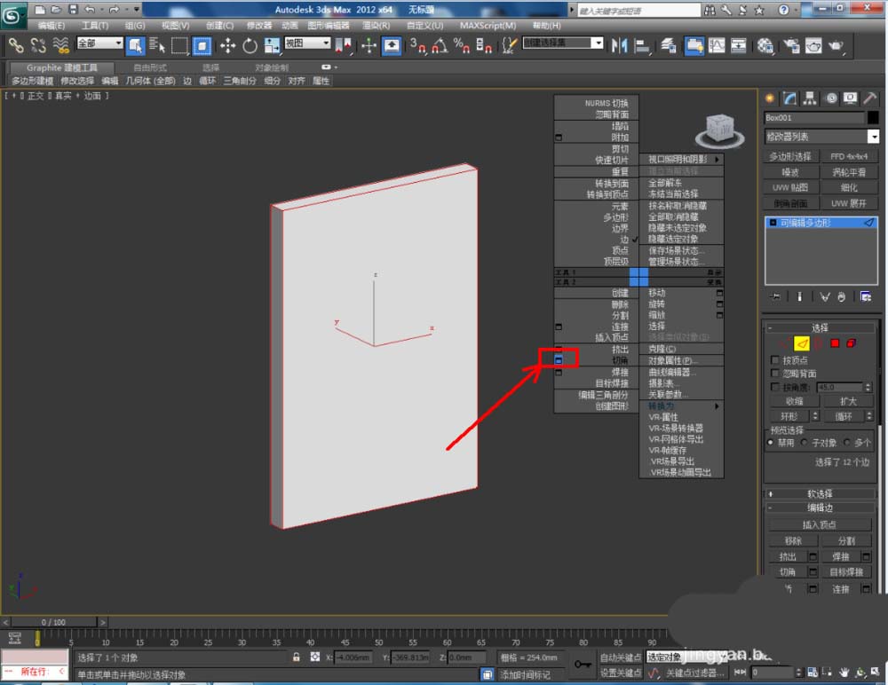 2、選中模型,點擊鼠標右鍵【轉換為】-【轉換為可編輯多邊形】。點擊右邊工作區中的【線】圖標,框選模型中的所有線后,點擊鼠標右鍵【切角】。按圖示設置好切角的各個參數(如圖所示);