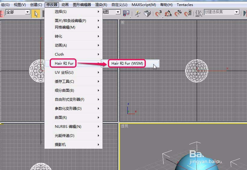 3、選擇“Hair和Fur”中的“Hair和Fur(WSM)”命令。