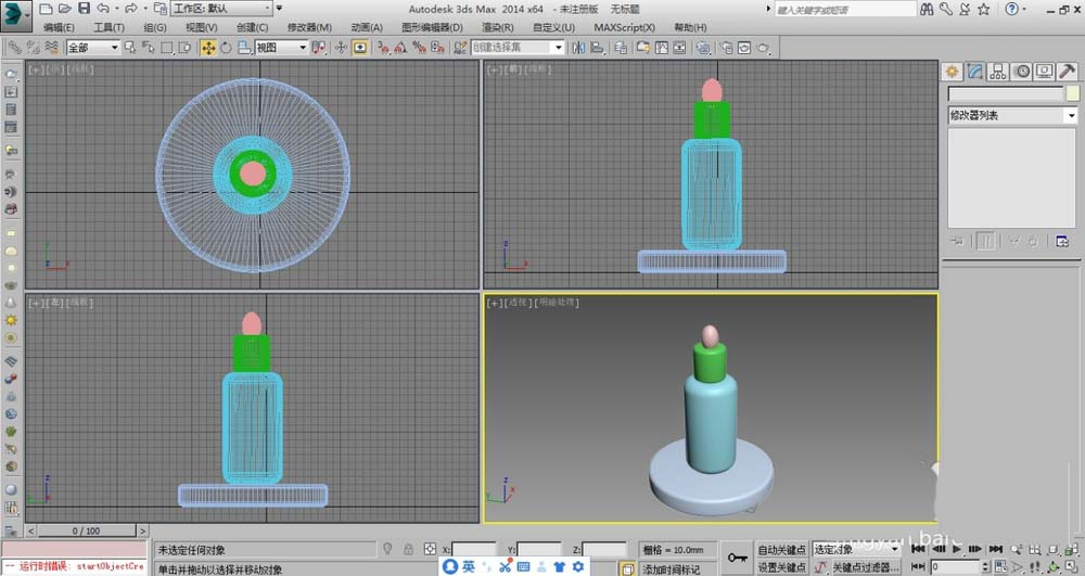 5、使用均勻縮放工具把燈泡縮小到看起來比較合適的狀態,并在透視圖沿著Z軸的方向往下移動一些位置,繪制完成。