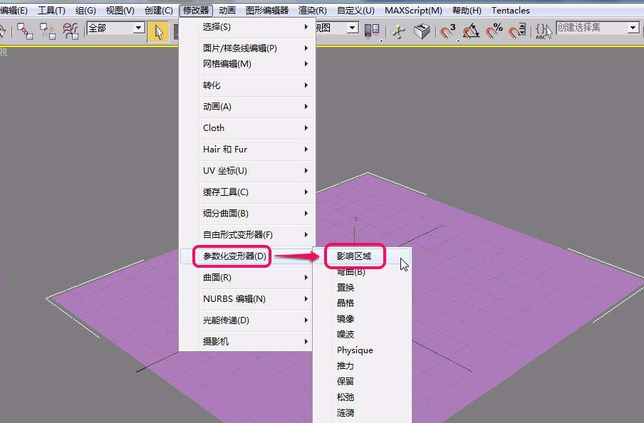 3dsmax中“影響區域”變形器,可以將一個平面的某個部分進行變形,造成一個凸起或者凹陷。該怎么創建影響區域呢?下面我們就來看看詳細的教程。