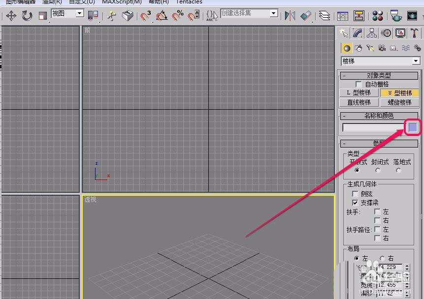 4、打開“名稱和顏色”卷展欄,為樓梯選擇一種顏色。